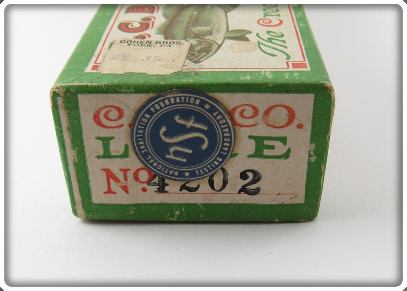 This is a nice old Creek Chub Red Head White Jointed Midget Pikie lure box # 4202 that was sold on Tough Lures! Vintage and antique fishing lures are added for sale often so keep checking back! I buy old lures so feel free to contact me if you have any to sell.