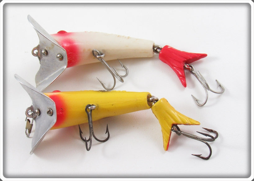 This is a nice old Creek Chub Red & White And Yellow Spotted Top N Pop Pair that was sold on Tough Lures! Vintage and antique fishing lures are added for sale often so keep checking back! I buy old lures so feel free to contact me if you have any to sell.