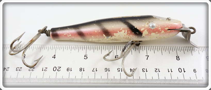 This is a nice old Creek Chub Salmon Finish Saltwater Pikie lure that was sold on Tough Lures! Vintage and antique fishing lures are added for sale often so keep checking back! I buy old lures so feel free to contact me if you have any to sell.