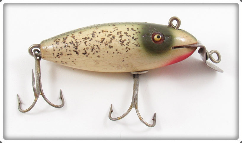 This is a nice old Creek Chub Silver Flash Baby Wiggler 218 lure that was sold on Tough Lures! Vintage and antique fishing lures are added for sale often so keep checking back! I buy old lures so feel free to contact me if you have any to sell.