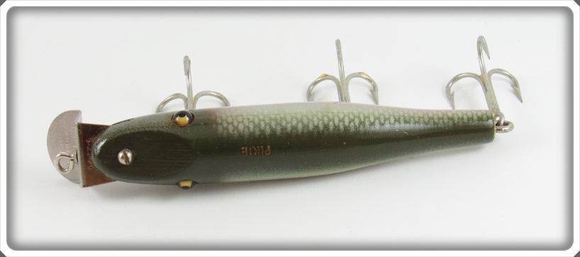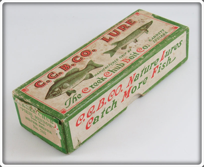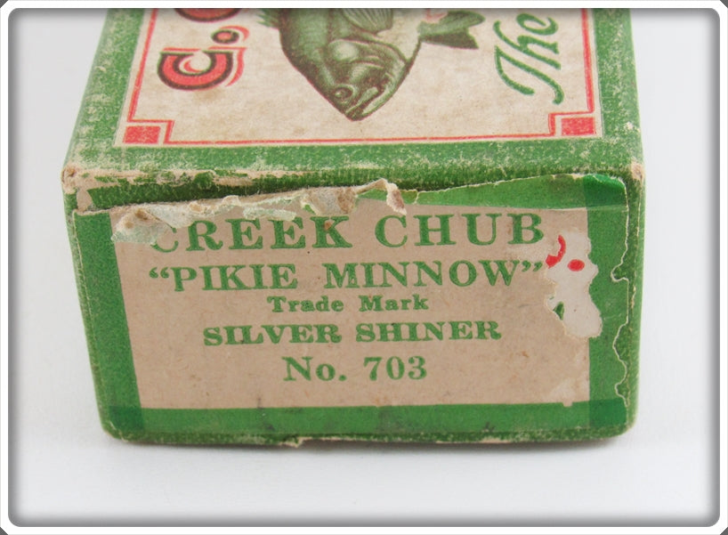 This is a nice old Creek Chub Silver Shiner Pikie lure # 703 that was sold on Tough Lures! Vintage and antique fishing lures are added for sale often so keep checking back! I buy old lures so feel free to contact me if you have any to sell.