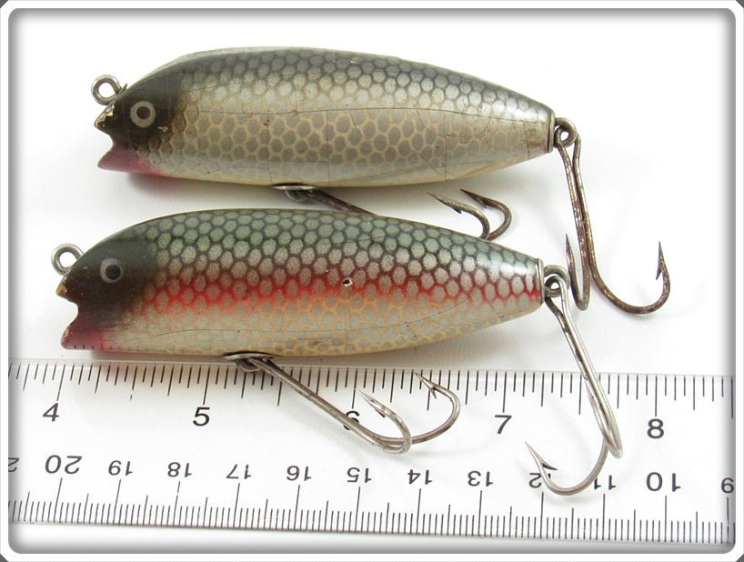 This is a nice old Creek Chub Silver Shiner & Redside Open Mouth Shiner Pair lure that was sold on Tough Lures! Vintage and antique fishing lures are added for sale often so keep checking back! I buy old lures so feel free to contact me if you have any to sell.