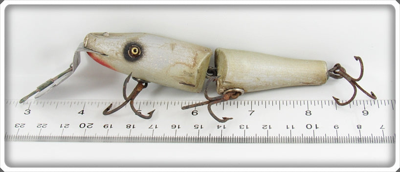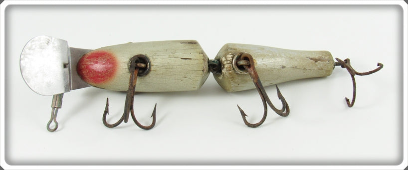 This is a nice old Creek Chub Silver With Black Eye Shadow Jointed Pikie lure # 2600 DD Special that was sold on Tough Lures. Vintage and antique fishing lures are added for sale often so keep checking back! I buy old lures so feel free to contact me if you have any to sell.