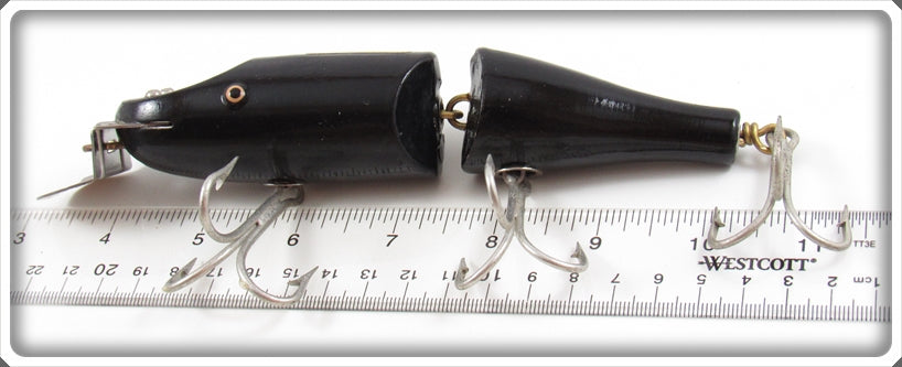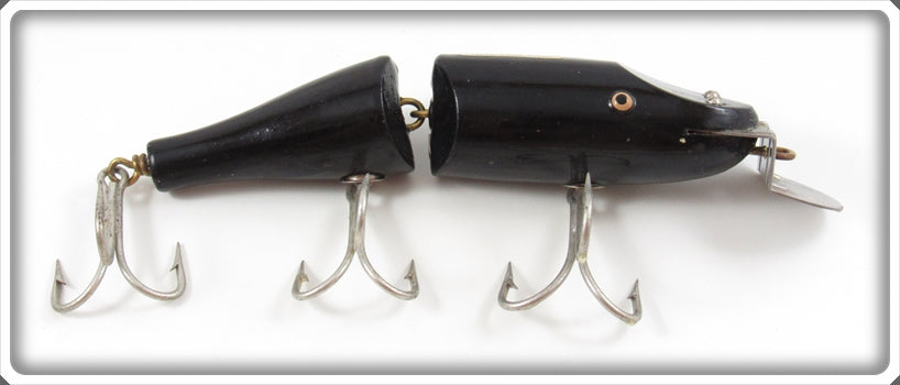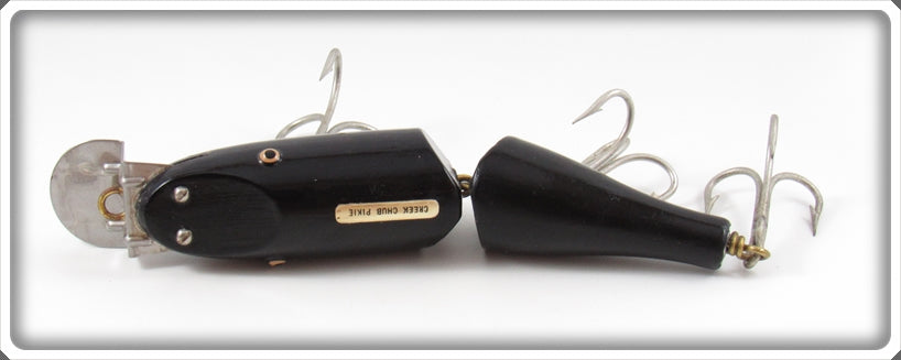 This is a nice old Creek Chub Solid Black Jointed Striper Pikie 6813 lure that was sold on Tough Lures! Vintage and antique fishing lures are added for sale often so keep checking back! I buy old lures so feel free to contact me if you have any to sell.