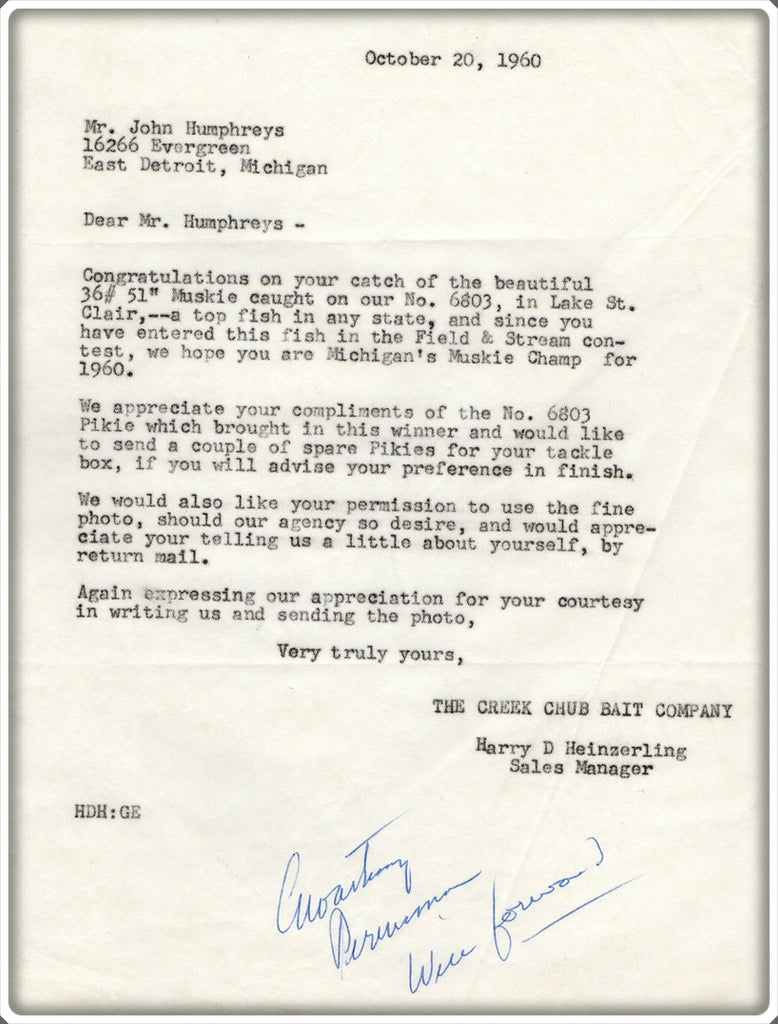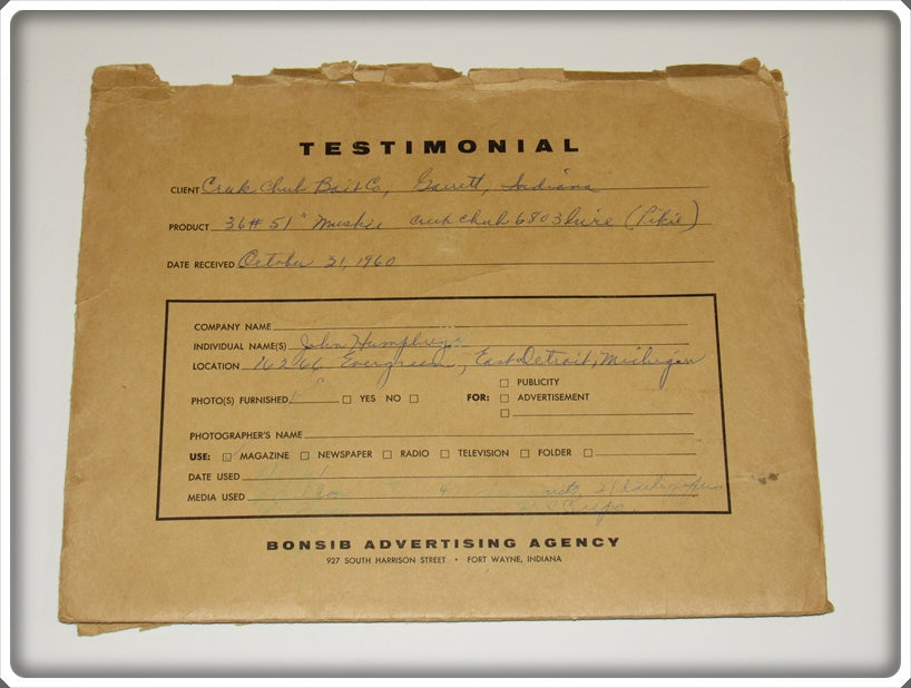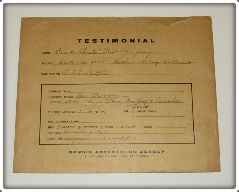 Creek Chub Testimonials, Letters & Photos In Envelopes