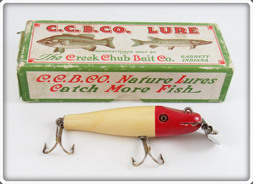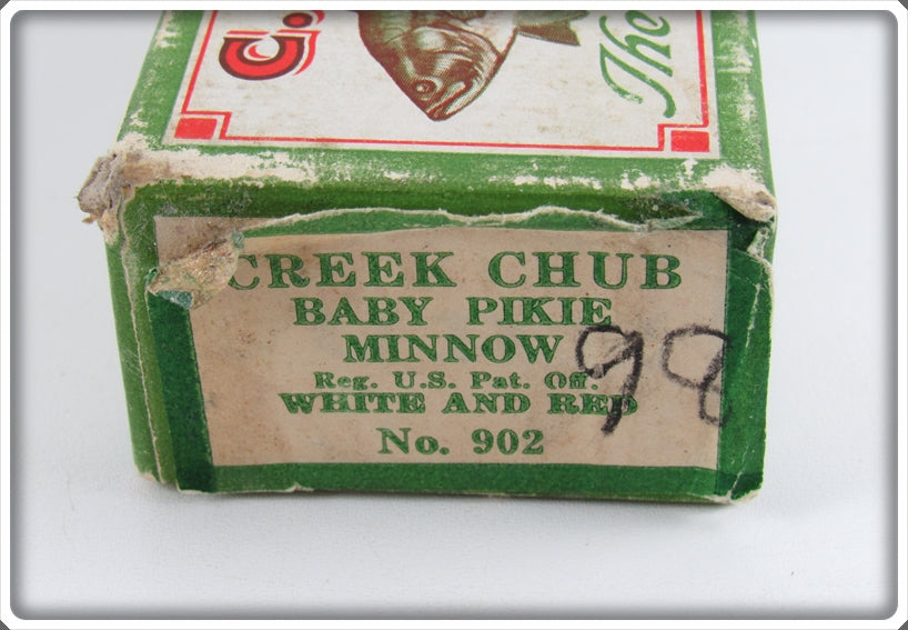 This is a nice old Creek Chub White And Red Baby Pikie lure # 902 that was sold on Tough Lures! Vintage and antique fishing lures are added for sale often so keep checking back! I buy old lures so feel free to contact me if you have any to sell.
