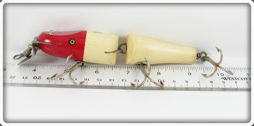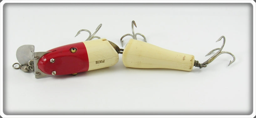 This is a nice old Creek Chub White And Red Jointed Snook Pikie lure # 5502 that was sold on Tough Lures! Vintage and antique fishing lures are added for sale often so keep checking back! I buy old lures so feel free to contact me if you have any to sell.