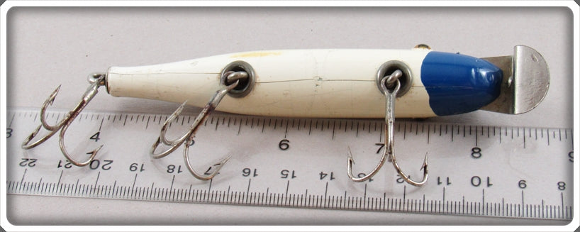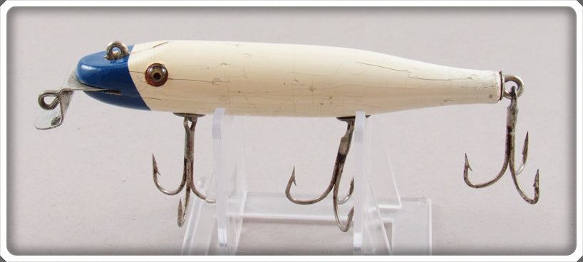 This is a nice old Creek Chub White Blue Slant Head Pikie 710 lure that was sold on Tough Lures! Vintage and antique fishing lures are added for sale often so keep checking back! I buy old lures so feel free to contact me if you have any to sell.