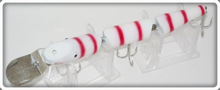This is a nice old Creek Chub White Red Stripes Tiger Striped Three Jointed Pikie lure # 2839 Special that was sold on Tough Lures! Vintage and antique fishing lures are added for sale often so keep checking back! I buy old lures so feel free to contact me if you have any to sell.