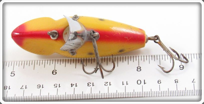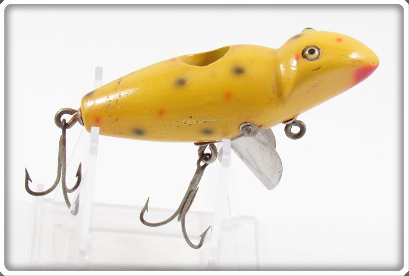 This is a nice old Creek Chub Yellow Spotted Baby Jigger lure that was sold on Tough Lures! Vintage and antique fishing lures are added for sale often so keep checking back! I buy old lures so feel free to contact me if you have any to sell.