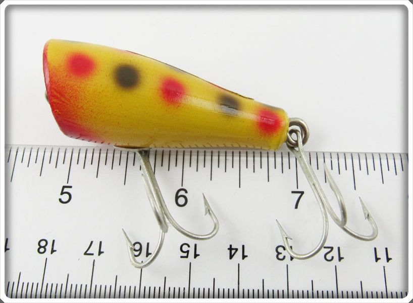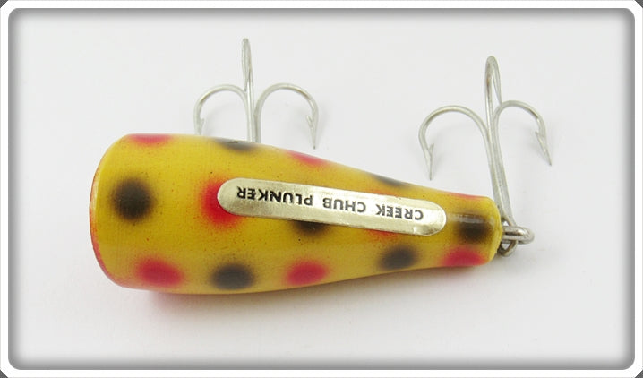 This is a nice old Creek Chub Yellow Spotted Midget Plunker lure # 5914 that was sold on Tough Lures! Vintage and antique fishing lures are added for sale often so keep checking back! I buy old lures so feel free to contact me if you have any to sell.