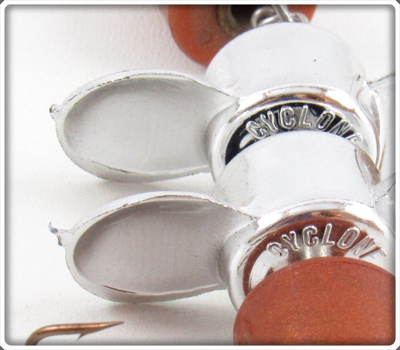 This is a nice old Cyclone Lure Co Brown Cyclone Spinner lure that was sold on Tough Lures! Vintage and antique fishing lures are added for sale often so keep checking back! I buy old lures so feel free to contact me if you have any to sell.