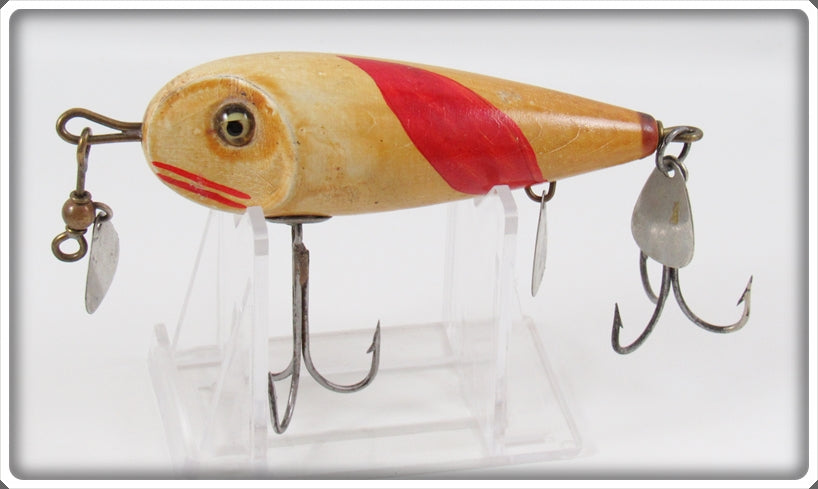This is a nice old Donaly Red & White Redfin Minnow lure that was sold on Tough Lures! Vintage and antique fishing lures are added for sale often so keep checking back! I buy old lures so feel free to contact me if you have any to sell.