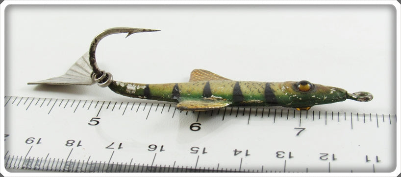This is a nice old Fred Arbogast Tin Liz Perch lure that was sold on Tough Lures! Vintage and antique fishing lures are added for sale often so keep checking back! I buy old lures so feel free to contact me if you have any to sell.