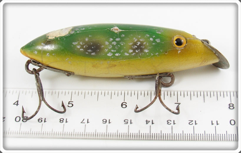 This is a nice old Green Wyle Company Frog Spot Silver Scale Series 700 Klipon Bait lure that was sold on Tough Lures! Vintage and antique fishing lures are added for sale often so keep checking back! I buy old lures so feel free to contact me if you have any to sell.