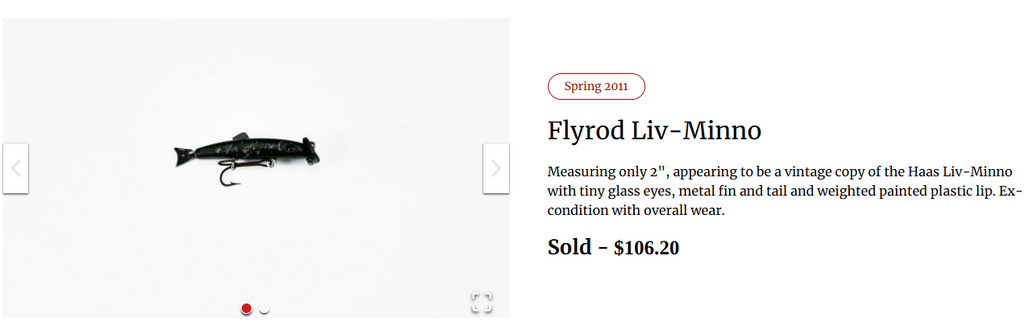 This is a nice old Reproduction Haas Tackle Co Green Fly Rod Liv Minno lure that was sold on Tough Lures! Vintage and antique fishing lures are added for sale often so keep checking back! I buy old lures so feel free to contact me if you have any to sell.