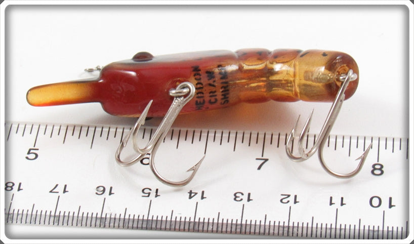 This is a nice old Heddon Amber Craw Shrimp 375 AMB lure that was sold on Tough Lures! Vintage and antique fishing lures are added for sale often so keep checking back! I buy old lures so feel free to contact me if you have any to sell.
