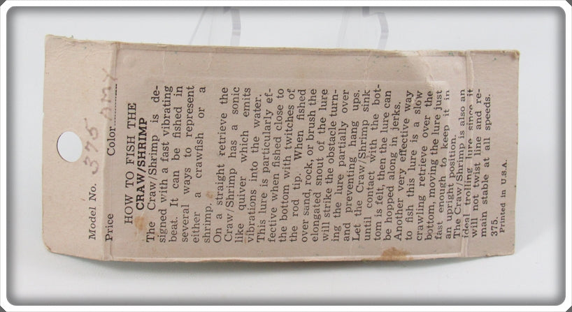 This is a nice old Heddon Amber Yellow Craw Shrimp 375 AMY lure that was sold on Tough Lures! Vintage and antique fishing lures are added for sale often so keep checking back! I buy old lures so feel free to contact me if you have any to sell.
