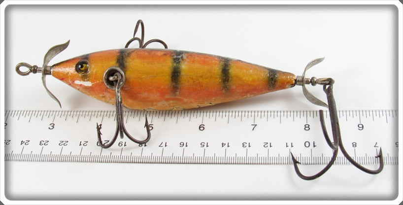 This is a nice old Bar Perch 700 Musky Minnow lure that was sold on Tough Lures! Vintage and antique fishing lures are added for sale often so keep checking back! I buy old lures so feel free to contact me if you have any to sell.