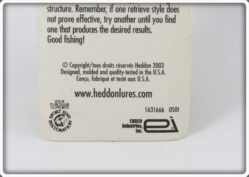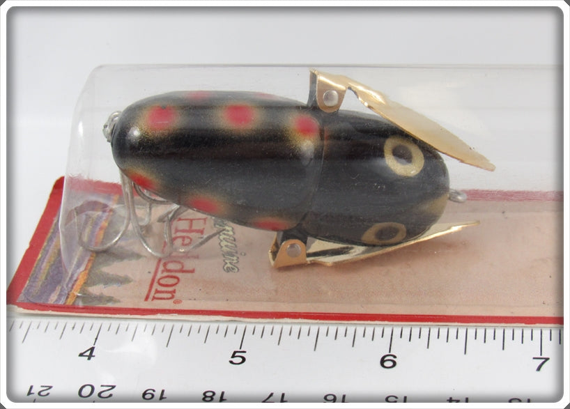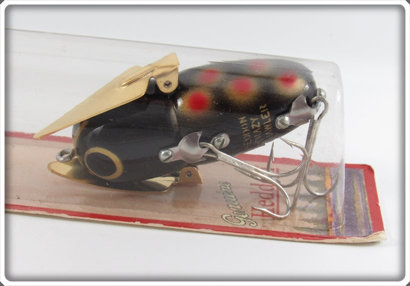 Heddon Black Gold & Red Spots Crazy Crawler On Card