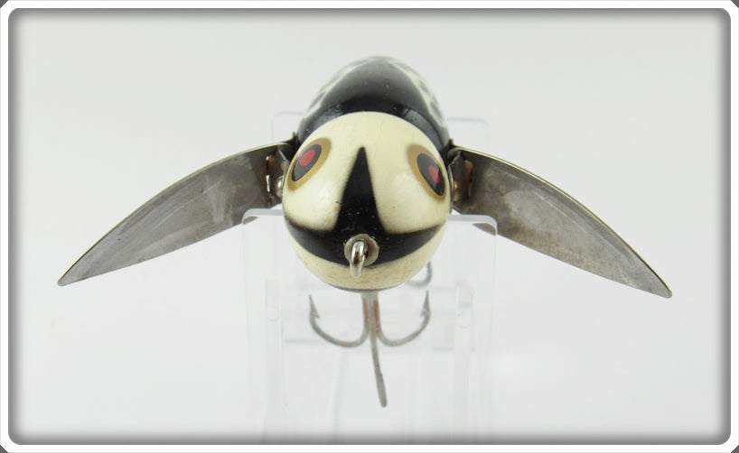 This is a nice old Heddon Crazy Crawler lure # 2100 BWH that was sold on Tough Lures! Vintage and antique fishing lures are added for sale often so keep checking back! I buy old lures so feel free to contact me if you have any to sell.