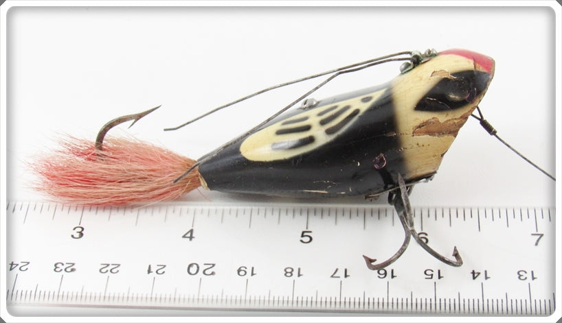 This is a nice old Heddon Black White Head 220 Weedless Widow lure # 229BWH that was sold on Tough Lures! Vintage and antique fishing lures are added for sale often so keep checking back! I buy old lures so feel free to contact me if you have any to sell.