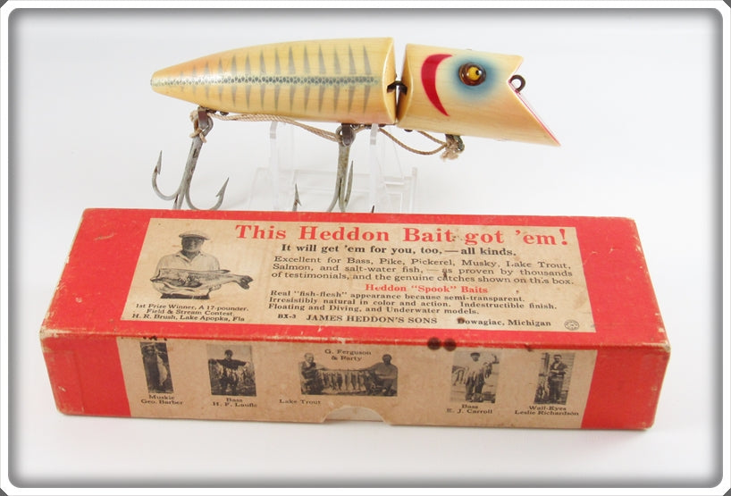 This is a nice old Heddon Blue Pearl Shore Minnow King Zig Wag lure # 8369 PLXB that was sold on Tough Lures! Vintage and antique fishing lures are added for sale often so keep checking back! I buy old lures so feel free to contact me if you have any to sell.