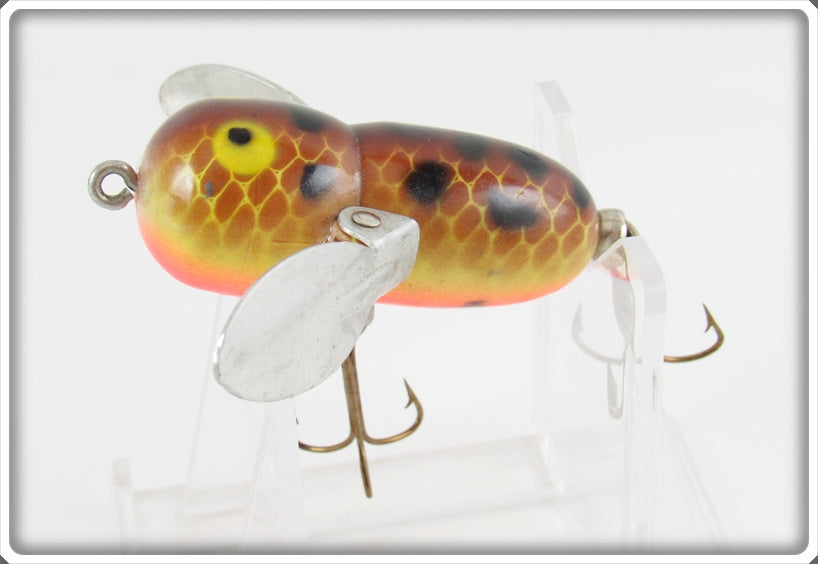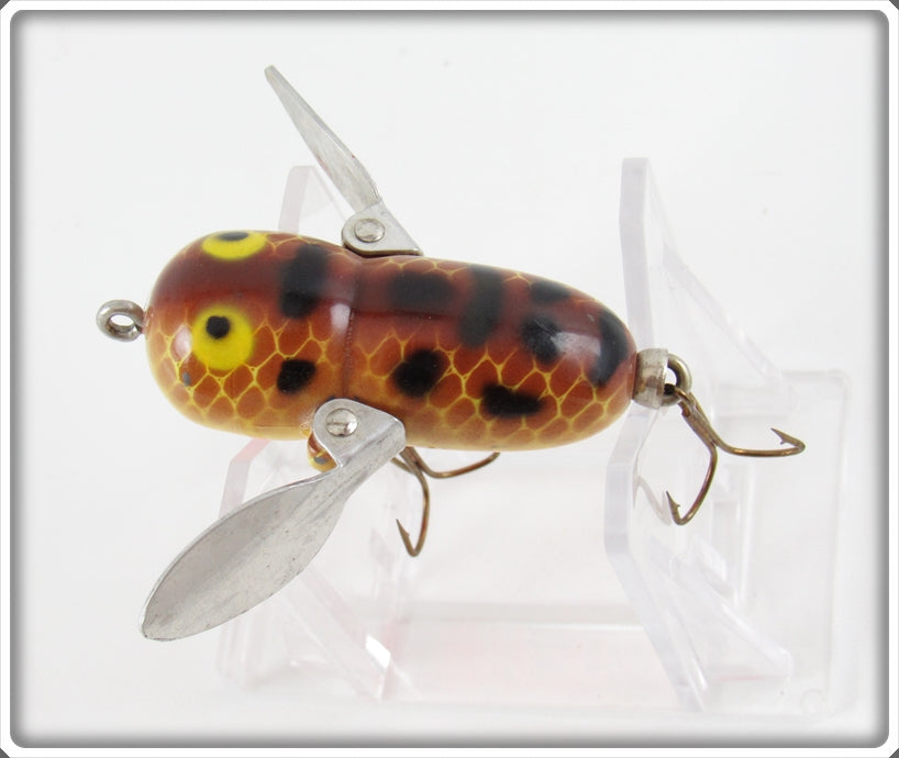 This is a nice old Heddon Brown Crawdad Tiny Crazy Crawler lure # 320 BRS that was sold on Tough Lures! Vintage and antique fishing lures are added for sale often so keep checking back! I buy old lures so feel free to contact me if you have any to sell.