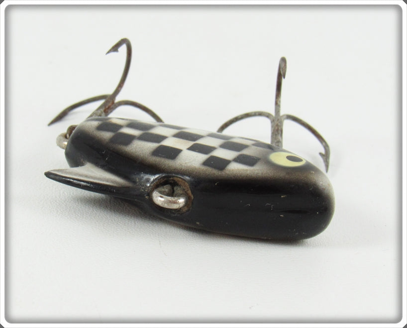 This is a nice old Heddon Checkerboard Indy 500 Sonic lure # 385 BWC that was sold on Tough Lures! Vintage and antique fishing lures are added for sale often so keep checking back! I buy old lures so feel free to contact me if you have any to sell.