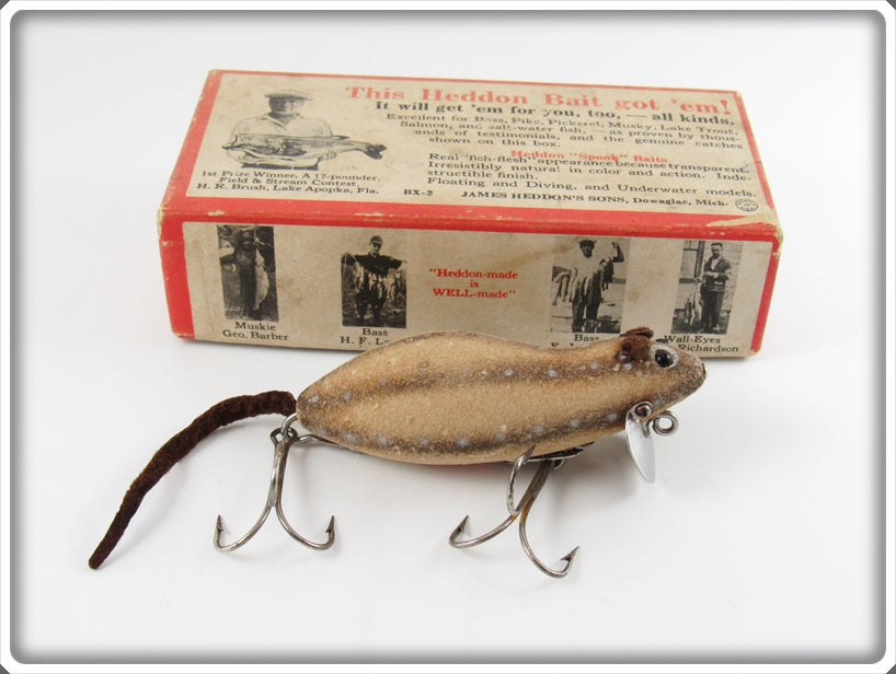 This is a nice old Heddon Chipmunk Munk Mouse lure # F4200CM that was sold on Tough Lures! Vintage and antique fishing lures are added for sale often so keep checking back! I buy old lures so feel free to contact me if you have any to sell.
