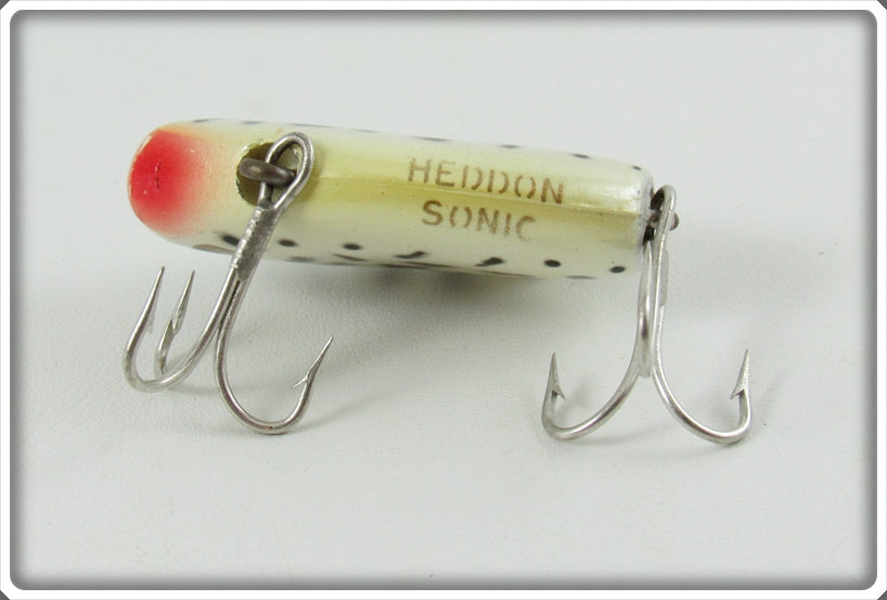 This is a nice old Heddon Coachdog Sonic In River Runt Research Box # 385-1 that was sold on Tough Lures! Vintage and antique fishing lures are added for sale often so keep checking back! I buy old lures so feel free to contact me if you have any to sell.