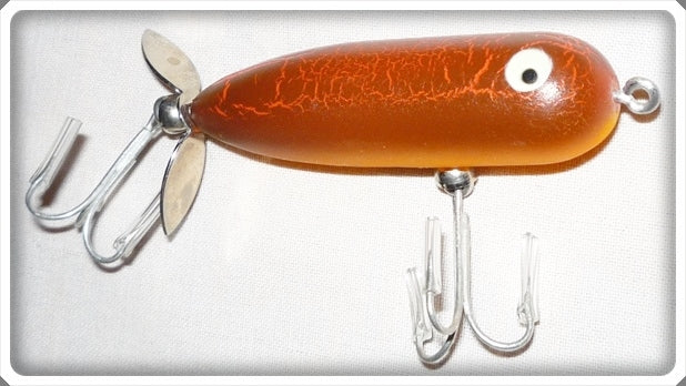 This is a nice old Heddon Crackleback Orange Baby Torpedo lure # 361 CBO that was sold on Tough Lures! Vintage and antique fishing lures are added for sale often so keep checking back! I buy old lures so feel free to contact me if you have any to sell.