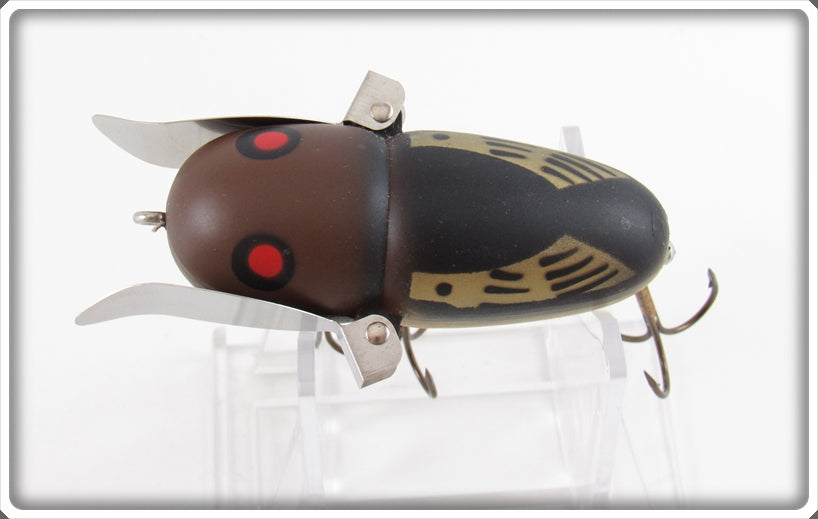 This is a nice old Heddon Black With Brown Head Crazy Crawler lure that was sold on Tough Lures! Vintage and antique fishing lures are added for sale often so keep checking back! I buy old lures so feel free to contact me if you have any to sell.
