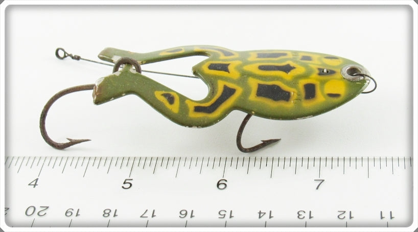 This is a nice old Heddon Frog Finish Spoony Frog lure # 3209B that was sold on Tough Lures! Vintage and antique fishing lures are added for sale often so keep checking back! I buy old lures so feel free to contact me if you have any to sell.