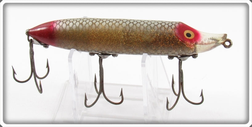 This is a nice old Heddon Gold Sparkle Lipless Vamp Spook S 9500 SP lure that was sold on Tough Lures! Vintage and antique fishing lures are added for sale often so keep checking back! I buy old lures so feel free to contact me if you have any to sell.