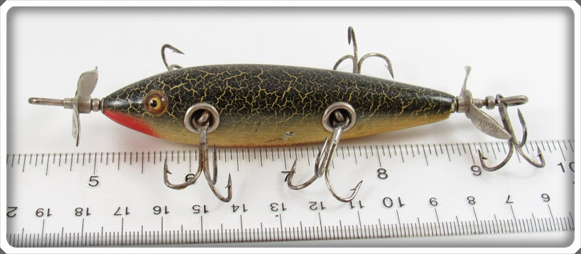 This is a nice old Heddon Green Crackleback 150 Dowagiac Minnow lure that was sold on Tough Lures! Vintage and antique fishing lures are added for sale often so keep checking back! I buy old lures so feel free to contact me if you have any to sell.