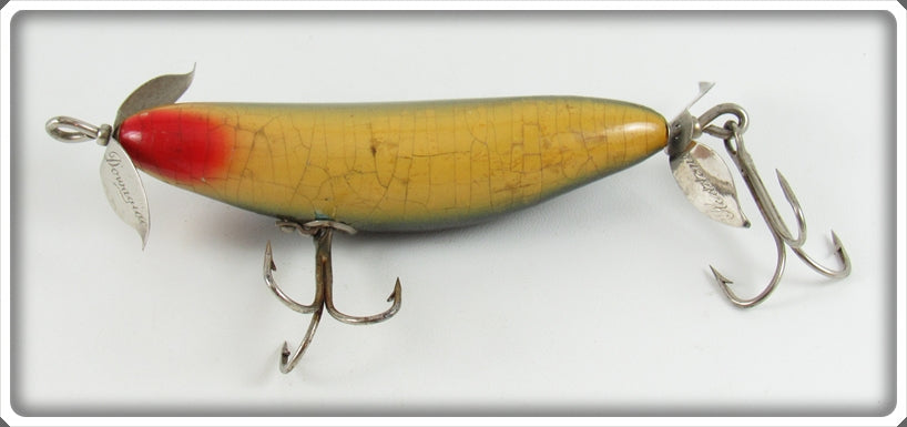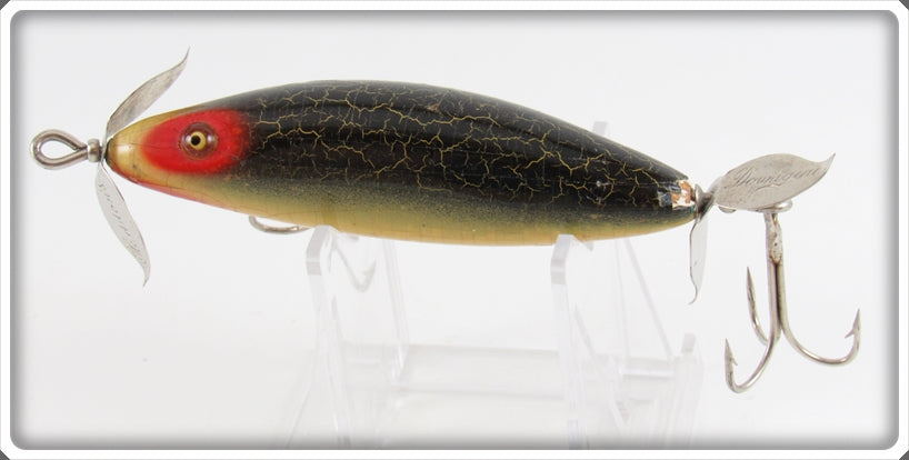 This is a nice old Heddon Green Crackleback S.O.S. Minnow lure # 160 that was sold on Tough Lures! Vintage and antique fishing lures are added for sale often so keep checking back! I buy old lures so feel free to contact me if you have any to sell.