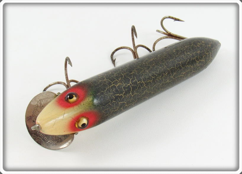 This is a nice old Heddon Green Crackleback Vamp lure # 7500 that was sold on Tough Lures! Vintage and antique fishing lures are added for sale often so keep checking back! I buy old lures so feel free to contact me if you have any to sell.
