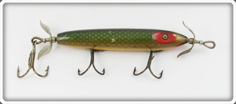 This is a nice old Heddon Green Scale 130 Torpedo lure # 139D that was sold on Tough Lures! Vintage and antique fishing lures are added for sale often so keep checking back! I buy old lures so feel free to contact me if you have any to sell.