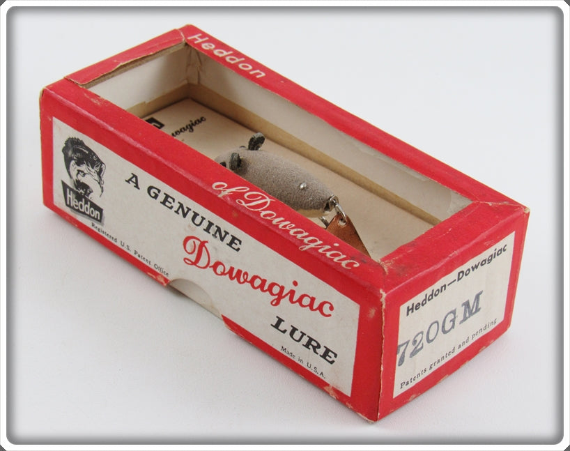 This is a nice old Heddon Grey Mouse Fly Rod Flaptail lure # 720 GM that was sold on Tough Lures! Vintage and antique fishing lures are added for sale often so keep checking back! I buy old lures so feel free to contact me if you have any to sell.