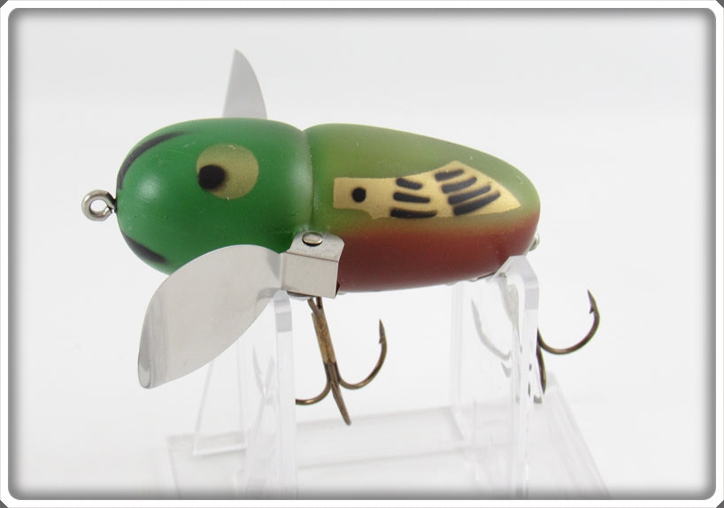 This is a nice old Heddon Light Green With Green Head Crazy Crawler lure that was sold on Tough Lures! Vintage and antique fishing lures are added for sale often so keep checking back! I buy old lures so feel free to contact me if you have any to sell.