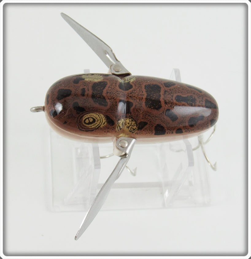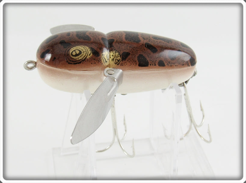 This is a nice old Heddon Natural Brown Frog Crazy Crawler lure that was sold on Tough Lures! Vintage and antique fishing lures are added for sale often so keep checking back! I buy old lures so feel free to contact me if you have any to sell.