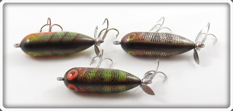 This is a nice old Heddon Natural Perch & Natural Shad Tiny Torpedo Lot Of Three that was sold on Tough Lures! Vintage and antique fishing lures are added for sale often so keep checking back! I buy old lures so feel free to contact me if you have any to sell.