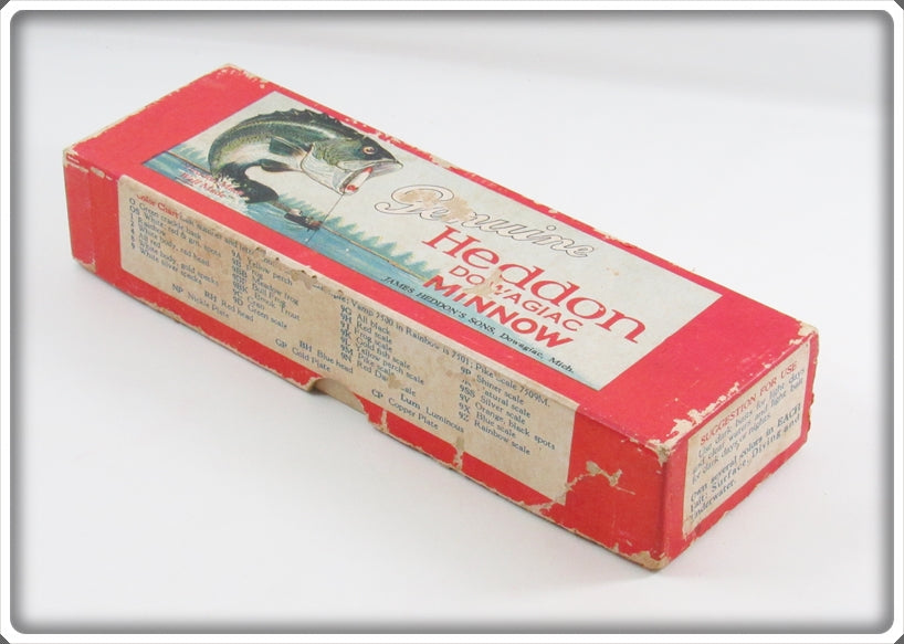 The lure is very nice with light wear. It is an early version with L rig hardware. The box is stamped X 7559R. This is a very hard to find box with the jumping bass and the X stamp. X was stamped on there to indicated the bait being discontinued.