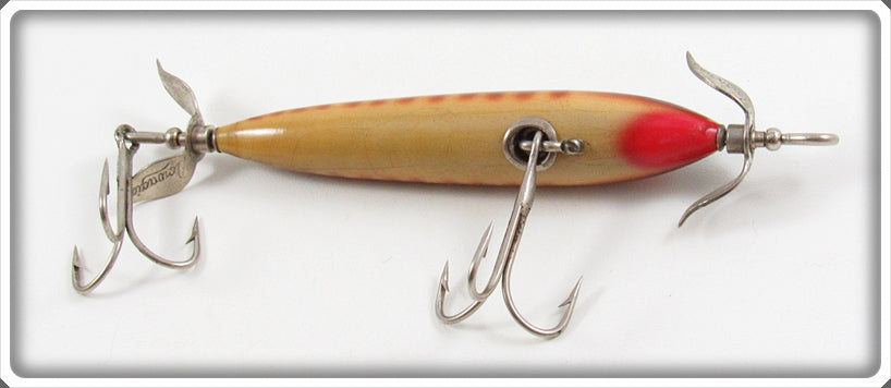 This is a nice old Heddon Natural Scale Baby Torpedo 129R lure that was sold on Tough Lures! Vintage and antique fishing lures are added for sale often so keep checking back! I buy old lures so feel free to contact me if you have any to sell.