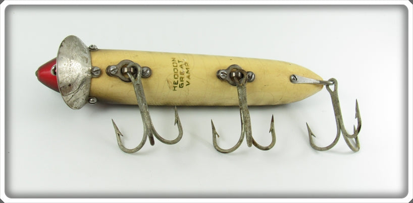 This is a nice old Heddon Natural Scale Great Vamp lure # 7549R that was sold on Tough Lures! Vintage and antique fishing lures are added for sale often so keep checking back! I buy old lures so feel free to contact me if you have any to sell.