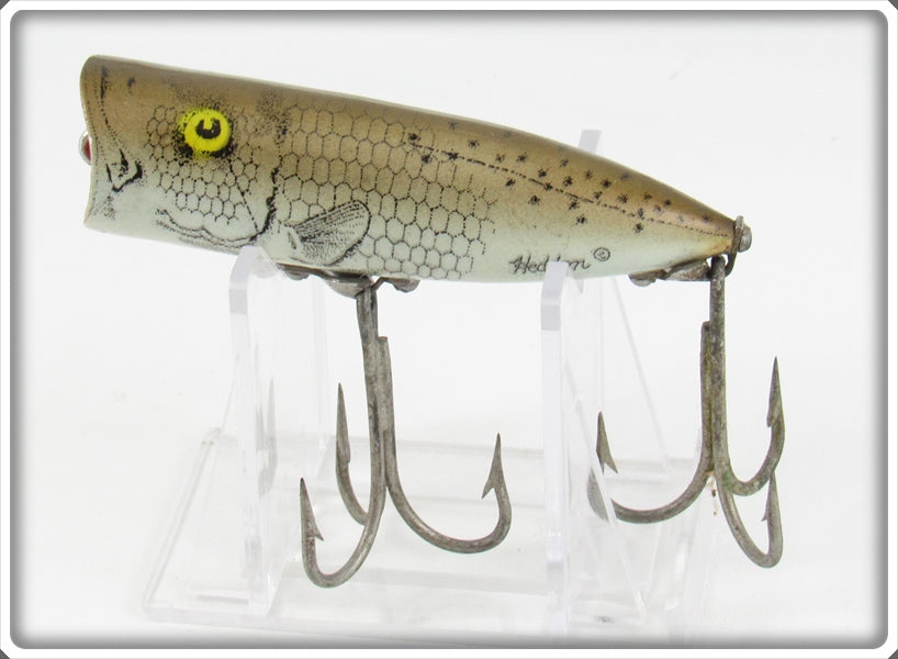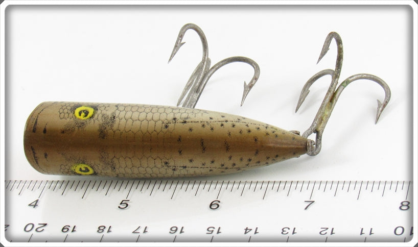 This is a nice old Heddon Natural Sea Trout Chugger Spook lure # 9540 NSE that was sold on Tough Lures! Vintage and antique fishing lures are added for sale often so keep checking back! I buy old lures so feel free to contact me if you have any to sell.