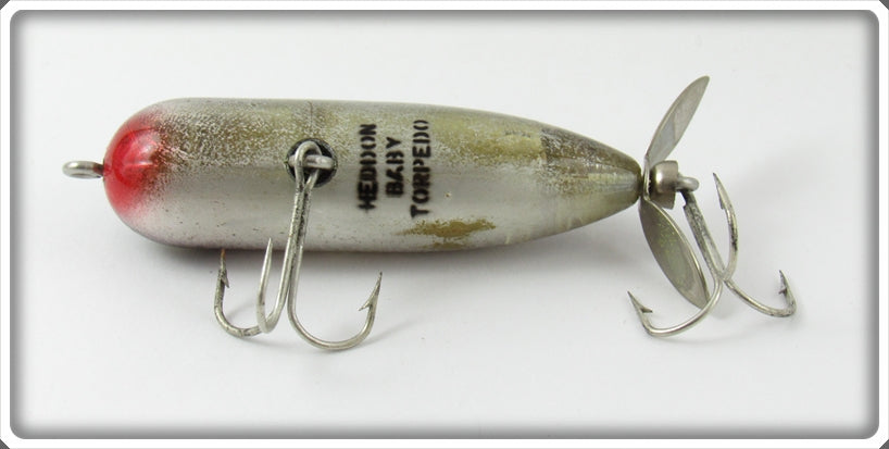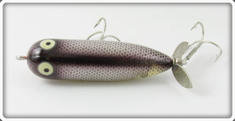 This is a nice old Heddon Nickel Plated Purple Baby Torpedo lure # 361 NPP that was sold on Tough Lures! Vintage and antique fishing lures are added for sale often so keep checking back! I buy old lures so feel free to contact me if you have any to sell.