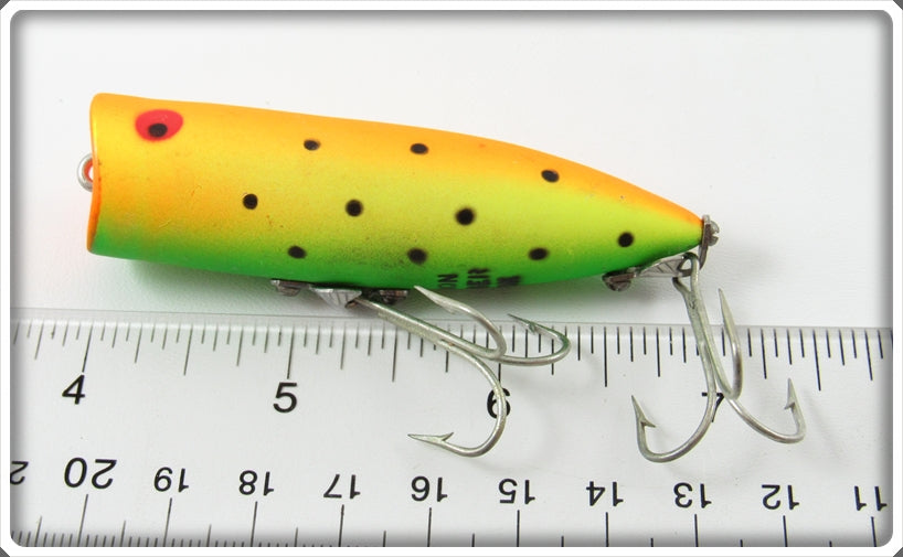This is a nice old Heddon Orange Crappie Chub Chugger Spook lure # 9540 OYG that was sold on Tough Lures! Vintage and antique fishing lures are added for sale often so keep checking back! I buy old lures so feel free to contact me if you have any to sell.