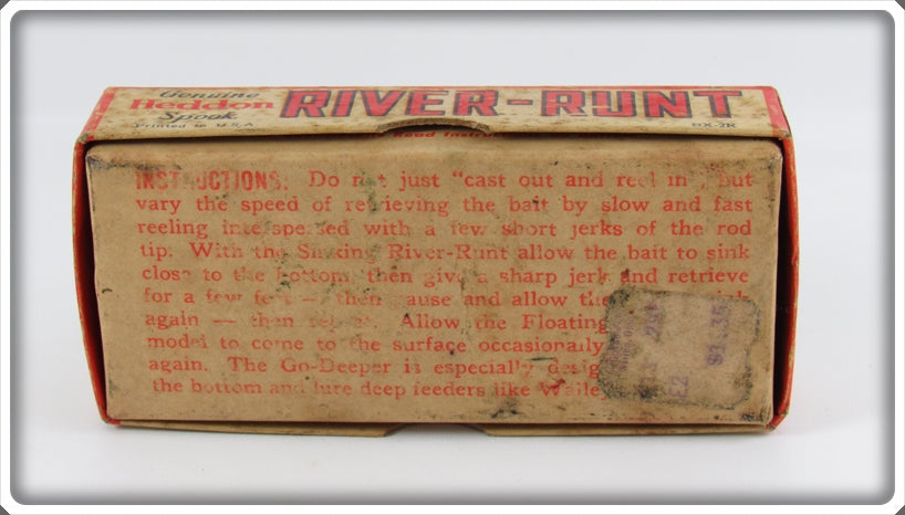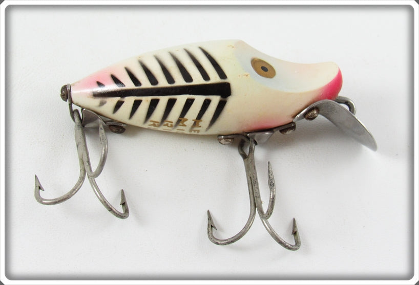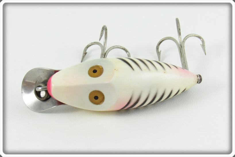 This is a nice old Heddon Pearl & Black Shore Minnow Midget River Runt lure # 9010XBP that was sold on Tough Lures! Vintage and antique fishing lures are added for sale often so keep checking back! I buy old lures so feel free to contact me if you have any to sell.